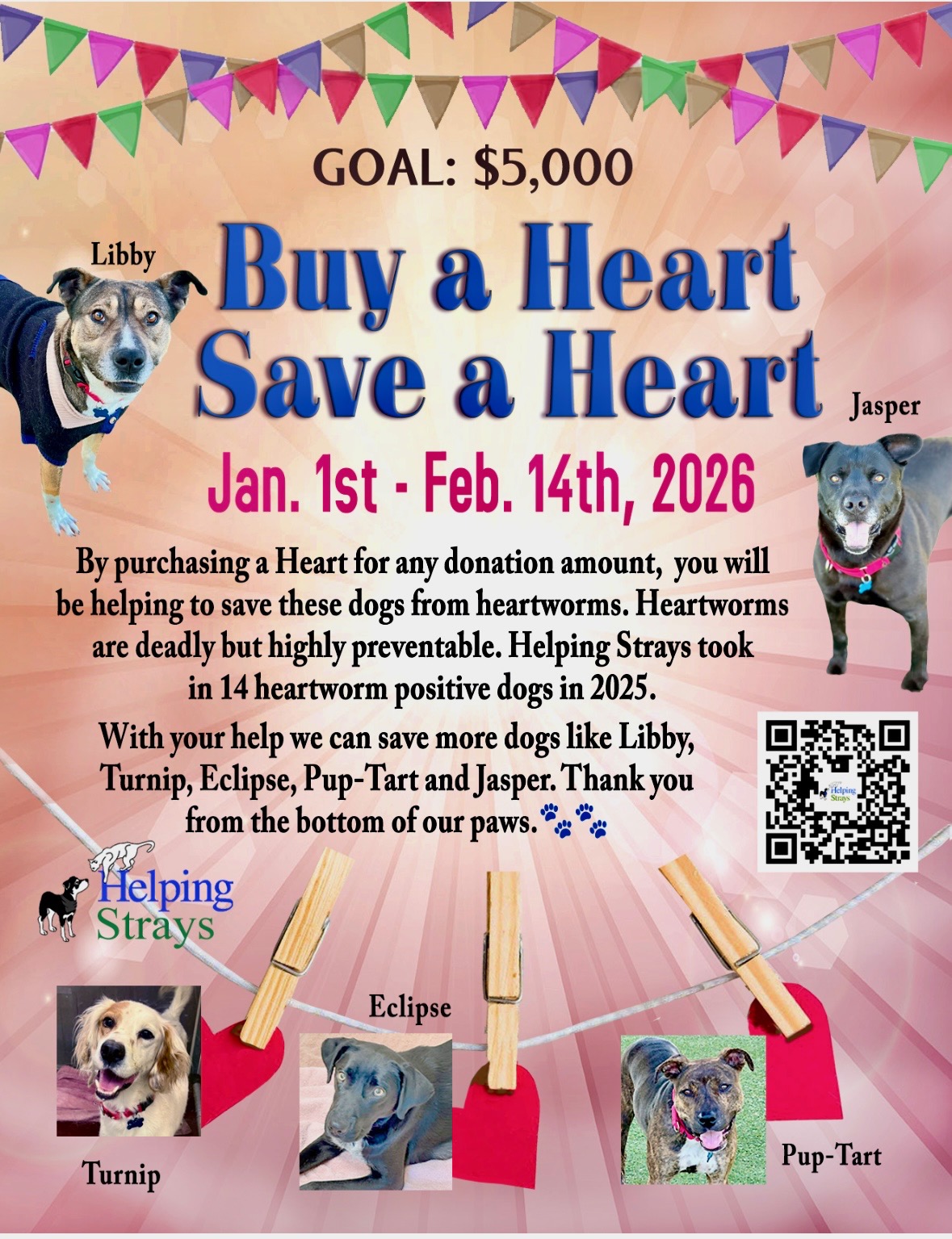 Purchase a heart for any donation amount and you will be helping cover the cost of expensive heartworm treatment for a shelter dog AND HELPING SAVE A LIFE.  You can purchase a heart(s) at the following businesses: