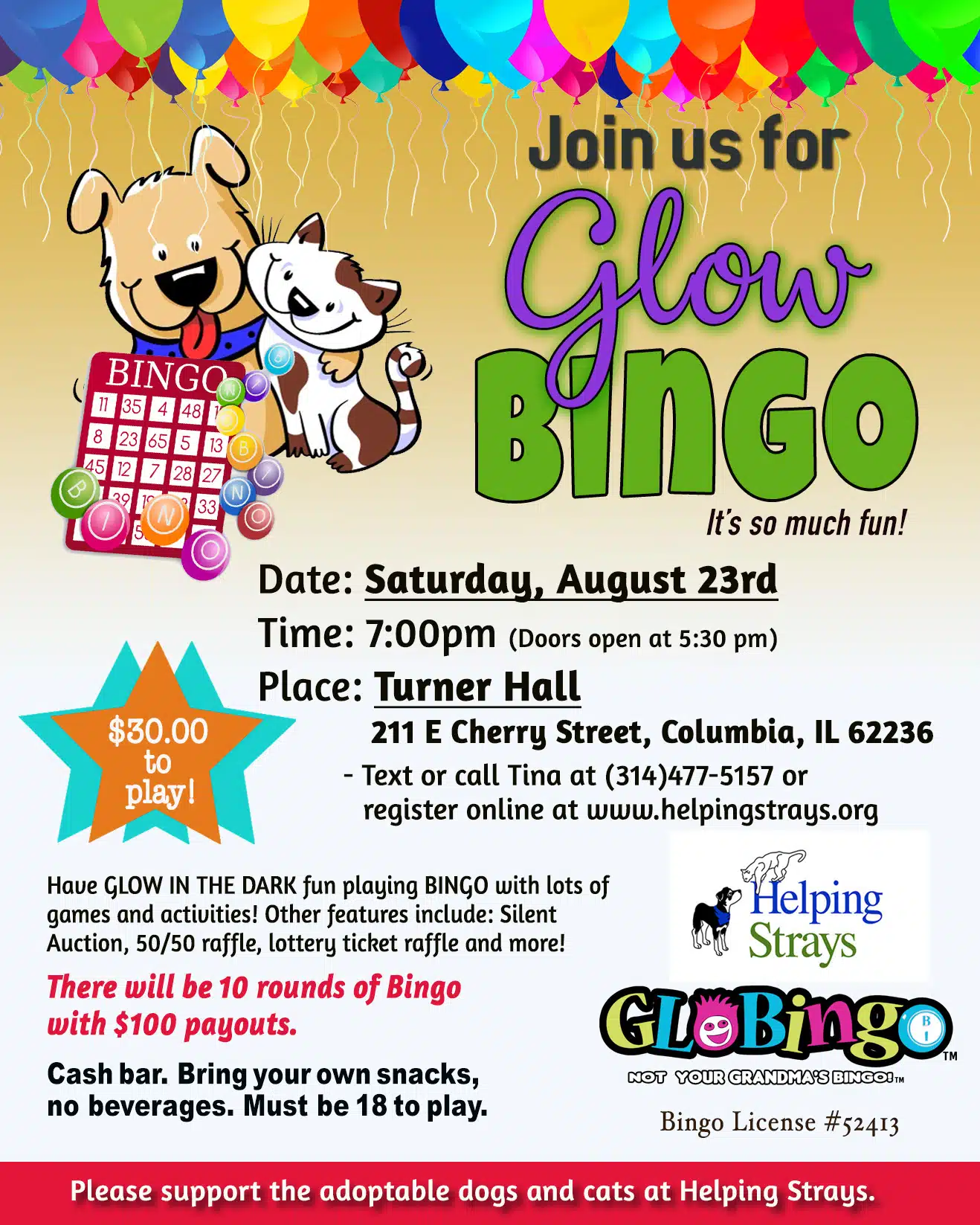 Join us for Glow Bingo on August 23rd.  This event always sells out so get your tickets now!