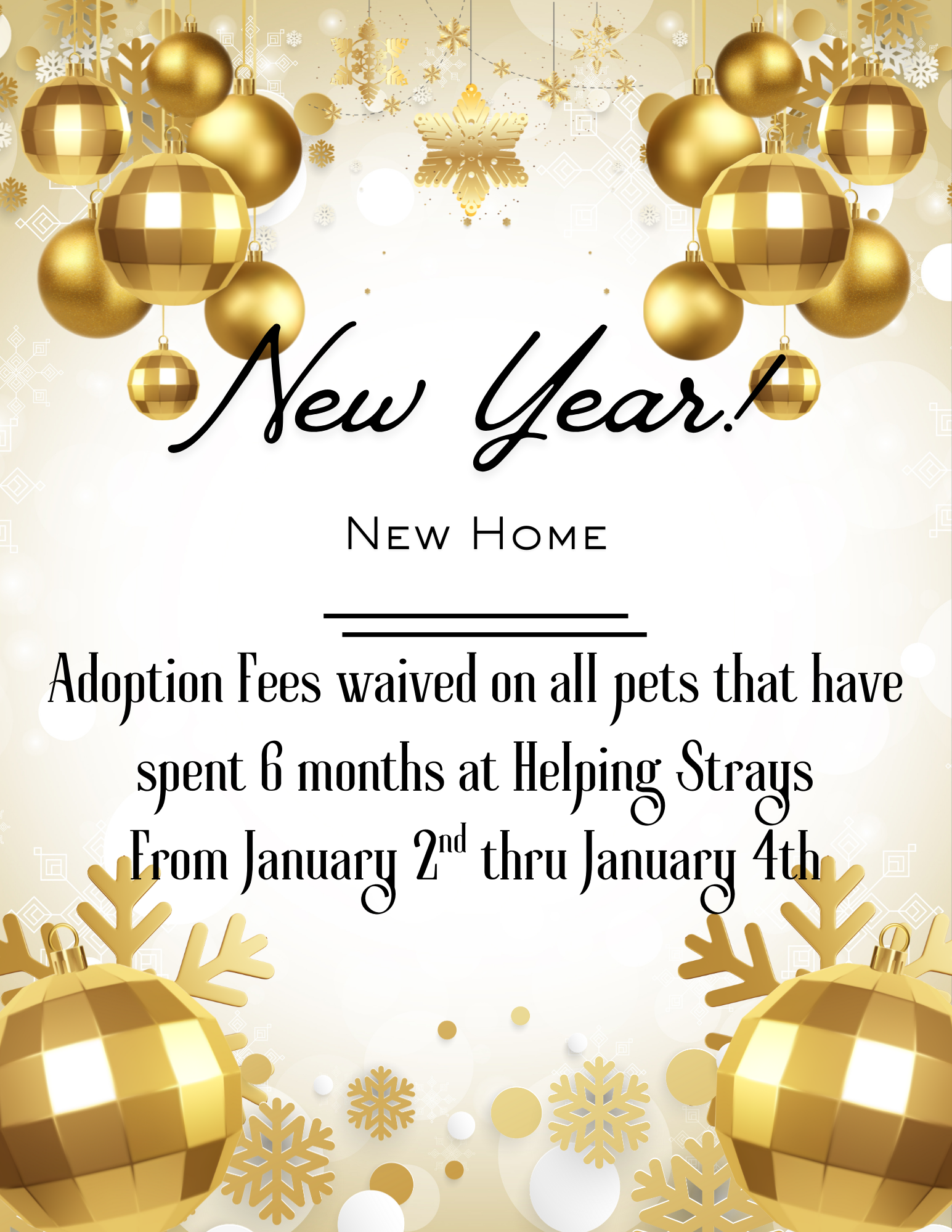 Adoption fees will be waived for all pets who have been in Helping Strays care for 6 months or longer!