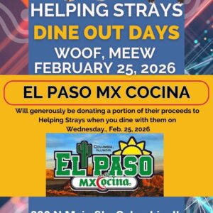 Dine at El Paso MX Cocina in Columbia on Wednesday, February 25 and they will donate a portion of the proceeds to Helping Strays!