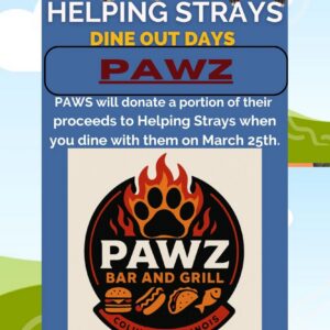 Dine at PAWZ Bar & Grill in Columbia on Wednesday, March 25 and they will donate a portion of the proceeds to Helping Strays!